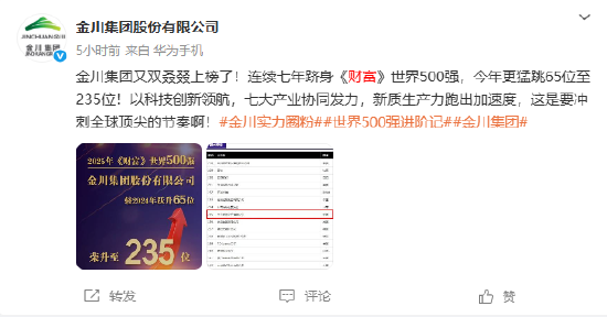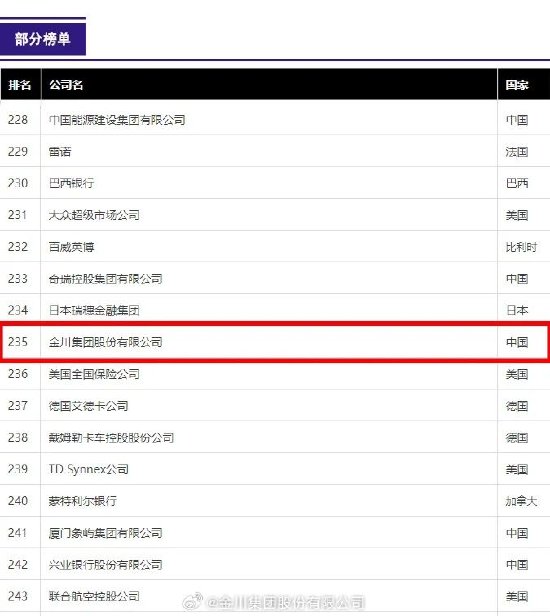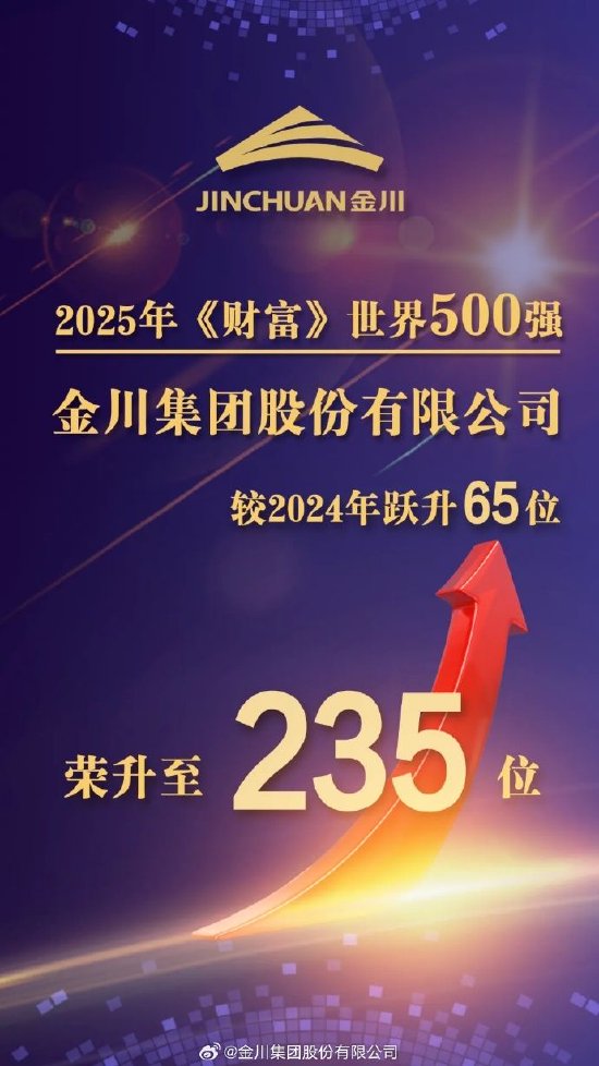 金川集团连续七年跻身《财富》世界500强,2025年猛跳65位至235位!