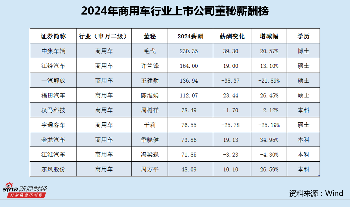 商用车行业董秘薪酬榜:江铃汽车业绩大降董秘许兰锋涨薪19万 164万年薪名列业内第二