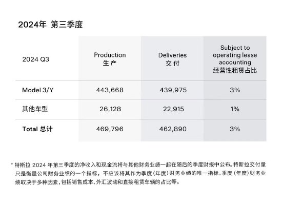 特斯拉:第三季度全球交付46.3万辆电动车