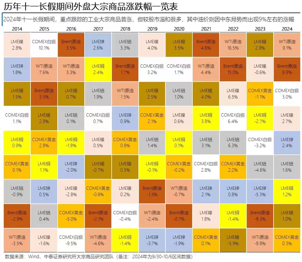 看图 | 历年十一长假期间外盘大宗商品涨跌幅一览