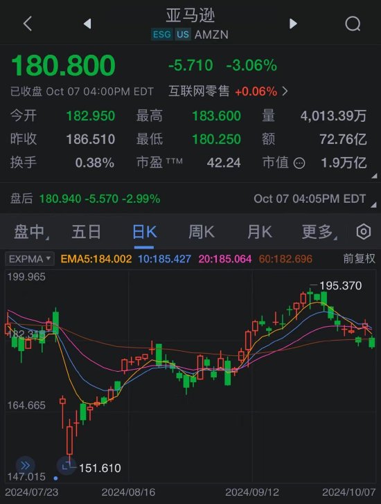 亚马逊公司股价在美股盘中交易中下跌,此前分析师罕见下调了其评级,理由是担心明年的利润率趋势,而云计算业务的增长不太可能弥补这一影响。