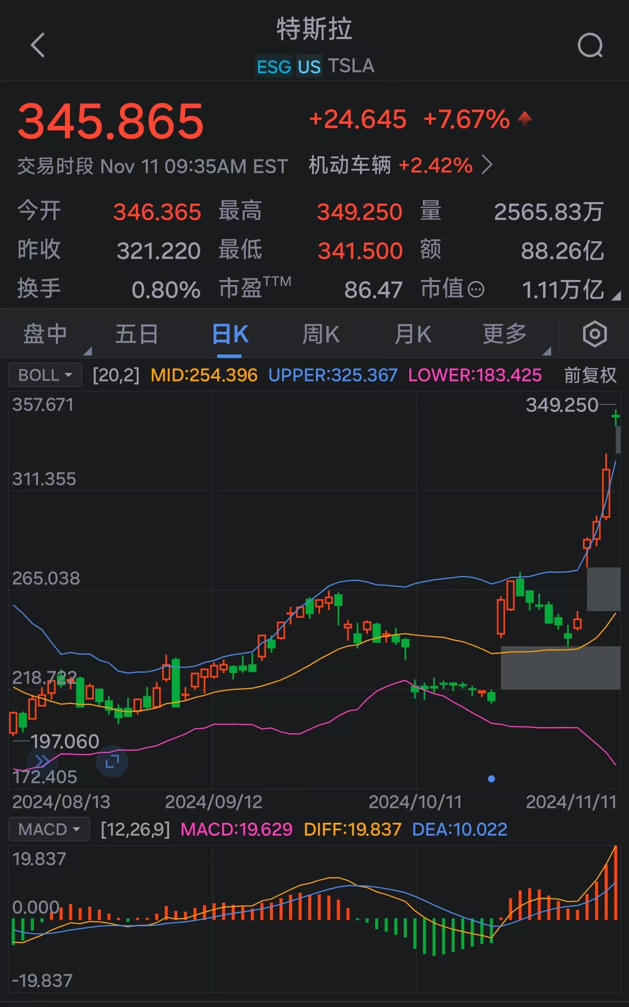 特斯拉涨8%,总市值站上1.1万亿美元,超越台积电升至美股第七位。