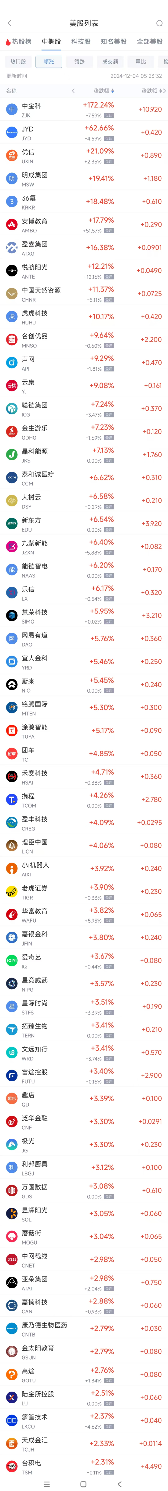 领涨中概股列表: