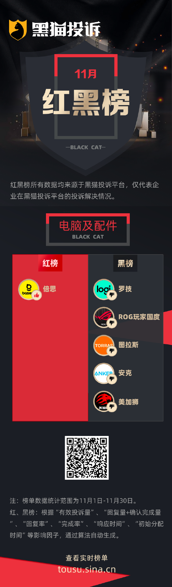 黑猫投诉11月行业红黑榜单