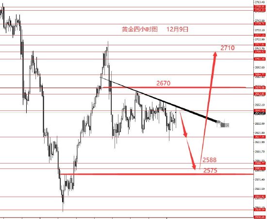 上周黄金区间内震荡,上周框架思路仍可延用,2670以下还是偏向于看空,只是上周一发稿件时把建仓价和止损价都向下移了十美金,导致上周策略最高价止损,但图形没走坏,框架思路还能用。大波段关注2670至2588/2575一线向下行情,再关注2575至2710的向上波段。本周短线继续关注2670强阻力,以下还是偏向于看空。今日先关注斜向压力线,操作策略:2648附近做空,止损2668,目标看向2617,再看向2588和2583区域。控制仓量,严格止损。