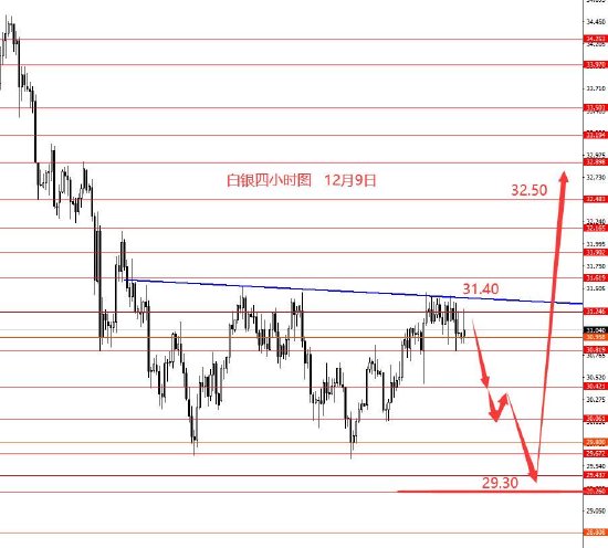 白银本周关注上方31.40强阻力,在没成功上破前,向下的概率较大些, 下方再关注29.60和29.30两个强支撑,后市长线框架还是要延用上周一稿件。今日操作建议:31.20附近做空,止损31.50,目标看向30.40和30.10,再看向29.60和29.30附近。29.30附近企稳后才方波段进场做多。框架思路仅供参考风险自负。
