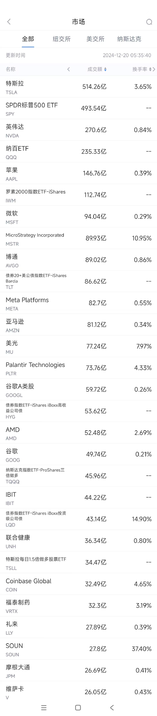 12月20日美股成交额前20:Palantir获瑞银看好,股价大涨8.5%