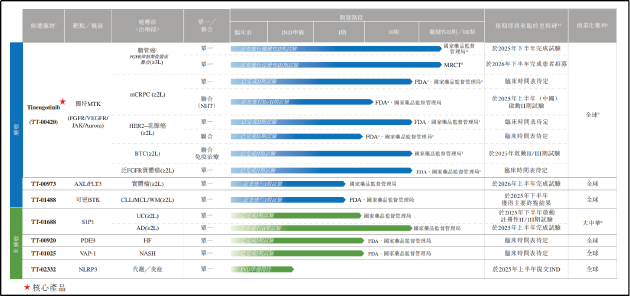 产品方面,目前药捷安康已建立6款临床阶段候选产品、1种临床前候选产品的管线,其中Tinengotinib(TT-00420)是药捷安康的核心产品,也是目前距离商业化最近的管线。
