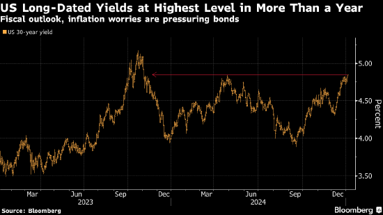 30年期美国国债收益率升至逾一年高点,投资者开始初尝特朗普上台可能在未来几个月给金融市场造成的动荡。