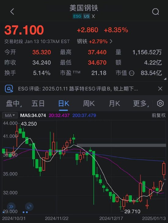 美国钢铁公司大涨 据报克利夫兰-克利夫斯与纽柯钢铁拟联合竞购美钢