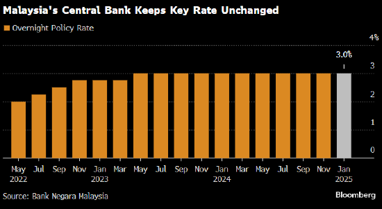 马来西亚周三维持基准利率不变,符合市场普遍预期,官员押注今年能够维持增长势头并保持通胀得到控制。