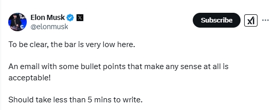 马斯克喊话联邦雇员“交周报” 并称写的好的人应该被提拔