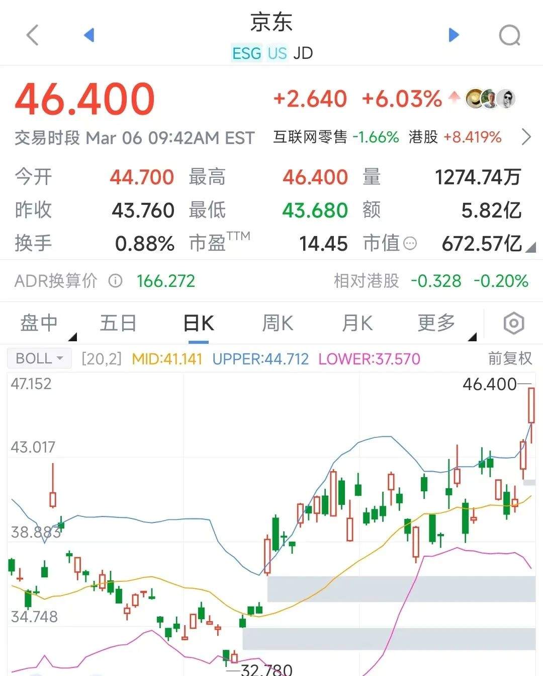 盘面上,京东集团在美股盘前直线拉升,涨幅一度扩大至10.58%。截至发稿,现涨6.03%。