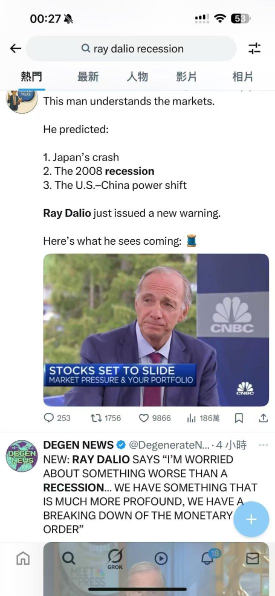 成功预测日本经济崩盘、2008年美国经济衰退与中美权力转移的桥水基金的创始人瑞·达利欧(Ray Dalio)又发预测:“我担心的是比经济衰退更糟糕的事情……我们有一些更深刻的东西,我们面临货币秩序的瓦解。”