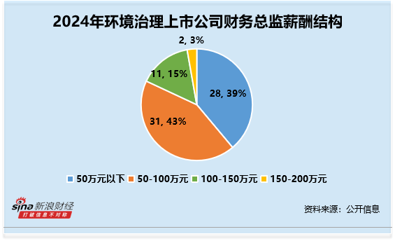 分行业来看,环保-环境治理行业(申万二级行业)上市公司财务总监CFO 2024年薪酬平均数约为68.52万元。其中薪酬最高为绿色动力易智勇,2024年薪酬高达155万元;薪酬最低为清水源(维权)王琳,本科学历,拥有近20年工龄,2024年薪酬为13.7万元(统计剔除了未完整领取2024年全年薪酬的财务总监CFO)。从整体薪酬分布来看,薪酬在50-100万元人数最多,共计31人,占比43%。