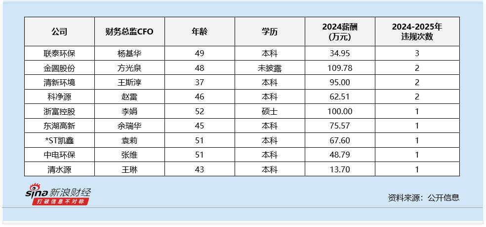 从违规情况来看,行业内共有9名财务总监CFO在2024-2025年收到过警示函、公开通报或内部通报的情况。