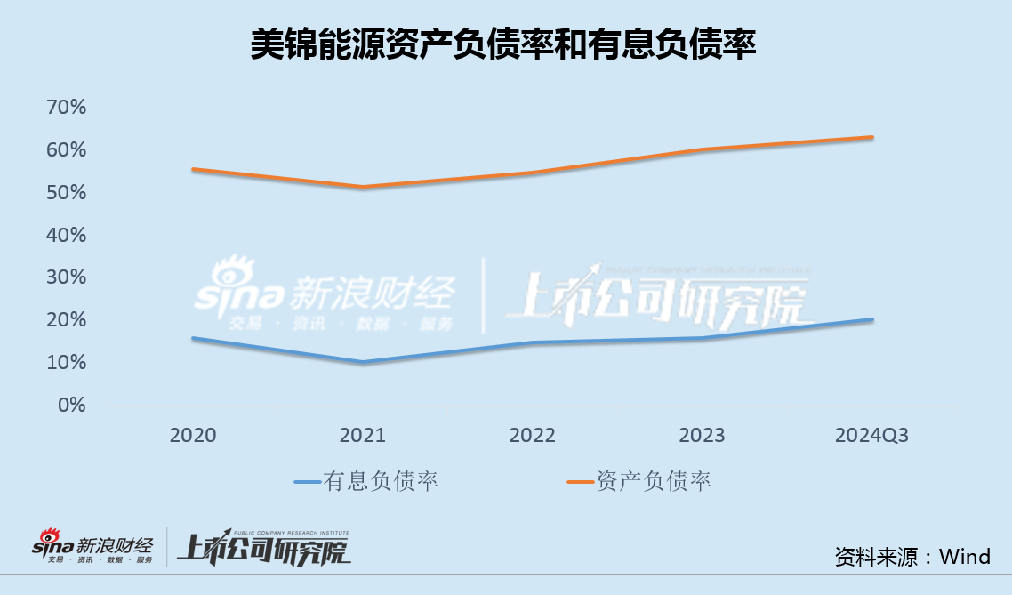 2020年,美锦能源筹划定增事项,拟融资66亿,最终实际募资10.98亿,负债率得以在2021年短暂下行,但此后很快又继续上升,并在2024年三季度末创下63%的多年来新高。